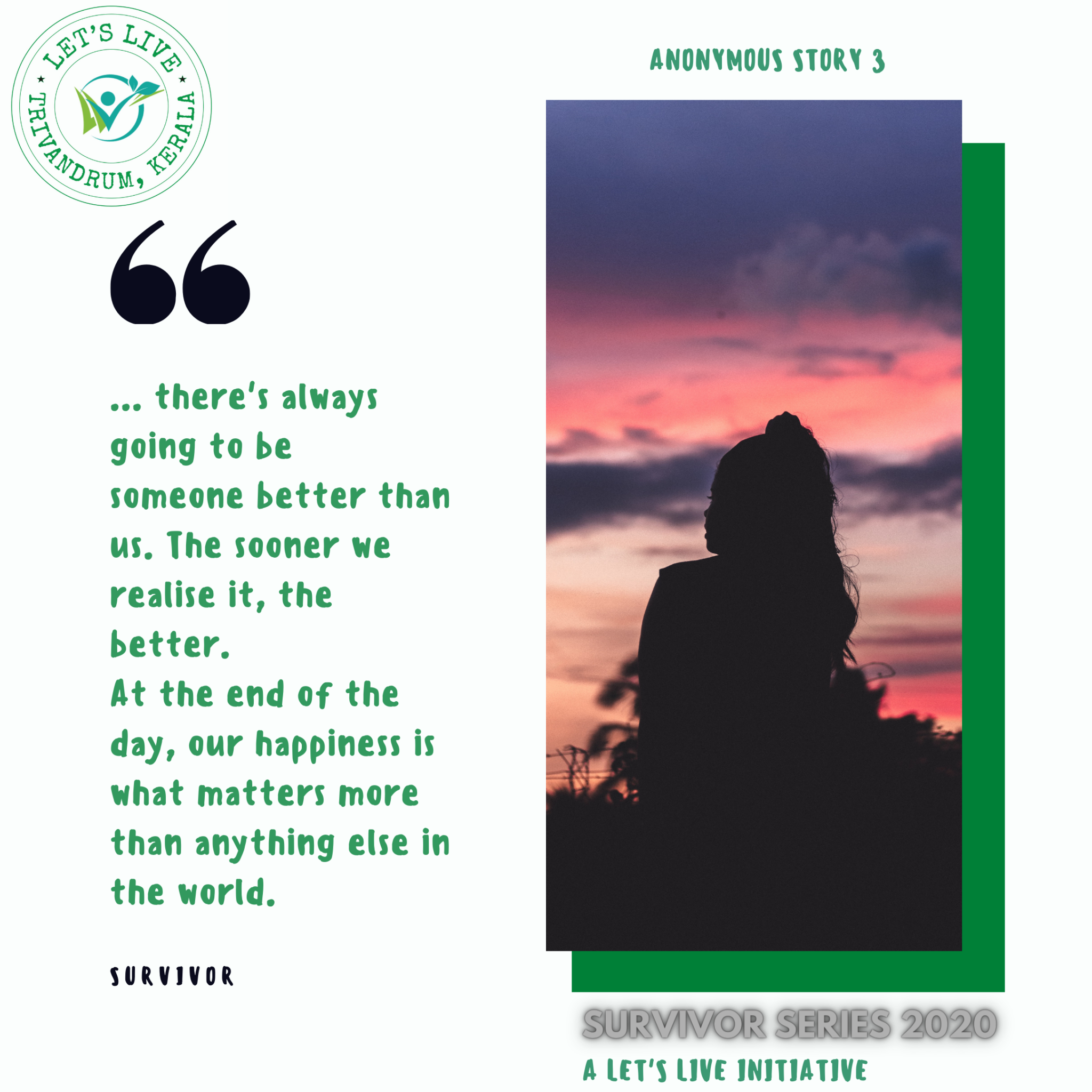 The hand that helped me, is still helping me out of the dark place I had locked myself in, was my mother’s. What she told me is what I have to tell others like me – there’s always going to be someone better than us. The sooner we realise it, the better. But that’s not a bad thing at all. Liking something and being good at something are entirely different. At the end of the day, our happiness is what matters more than anything else in the world.
